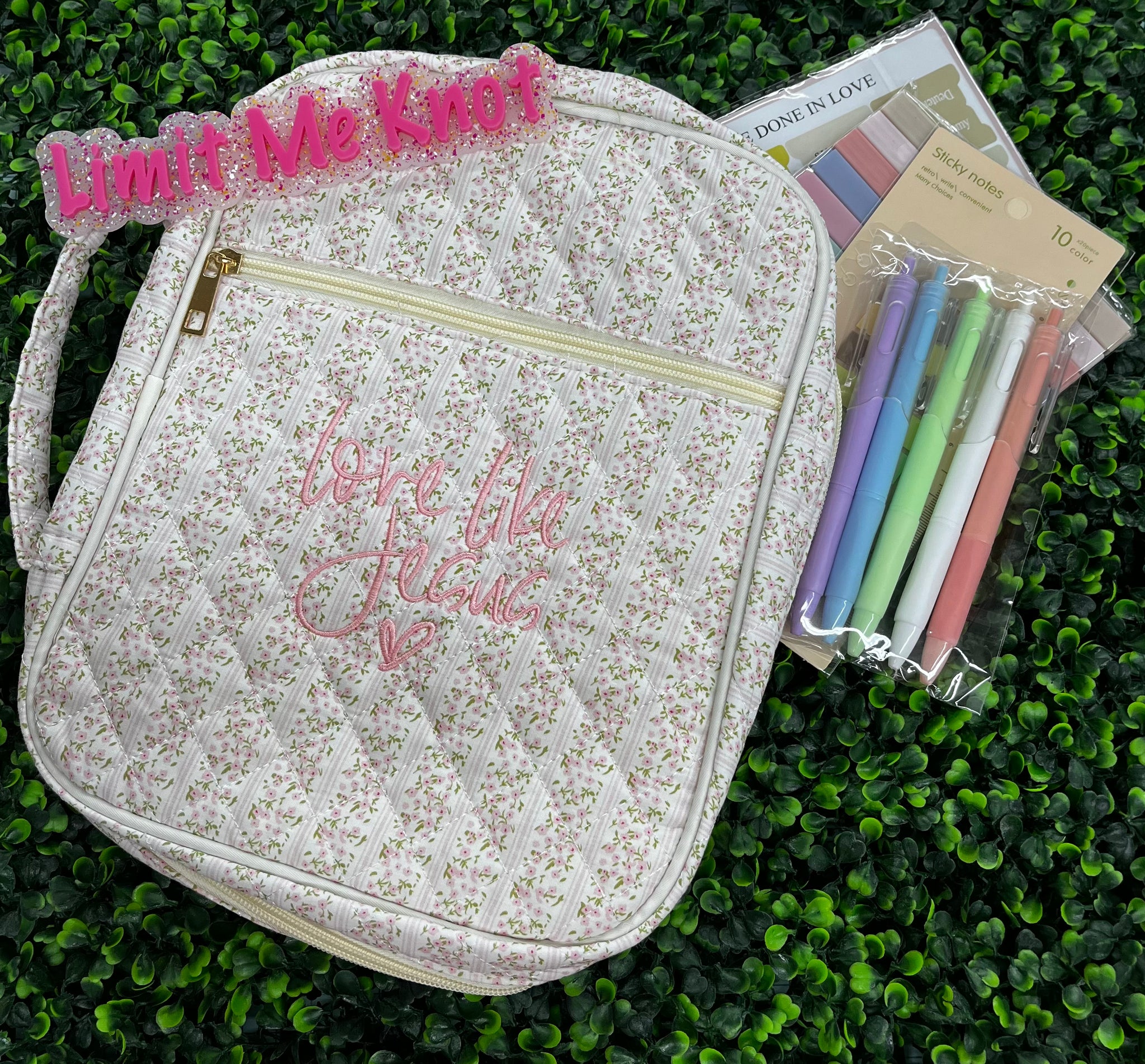 Protect your Bible while carrying a message that matters. This soft pink quilted Bible sleeve features the uplifting phrase “Love Like Jesus,” a simple reminder to lead with kindness, grace, and faith in everyday life.