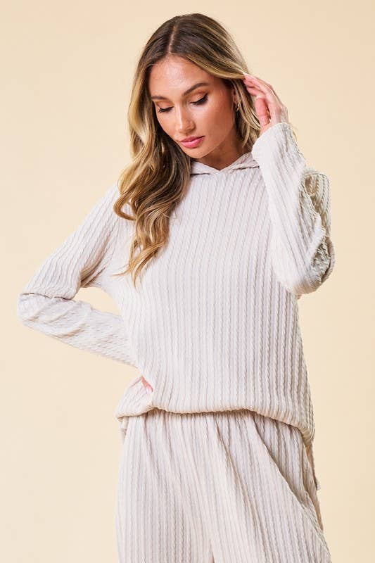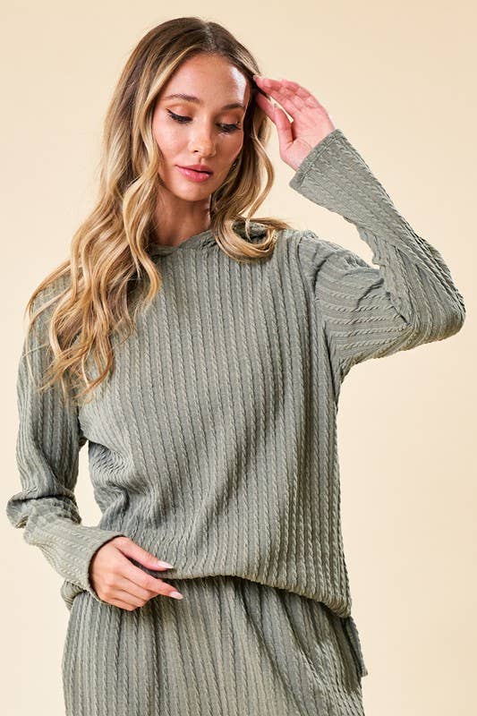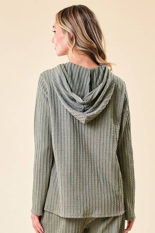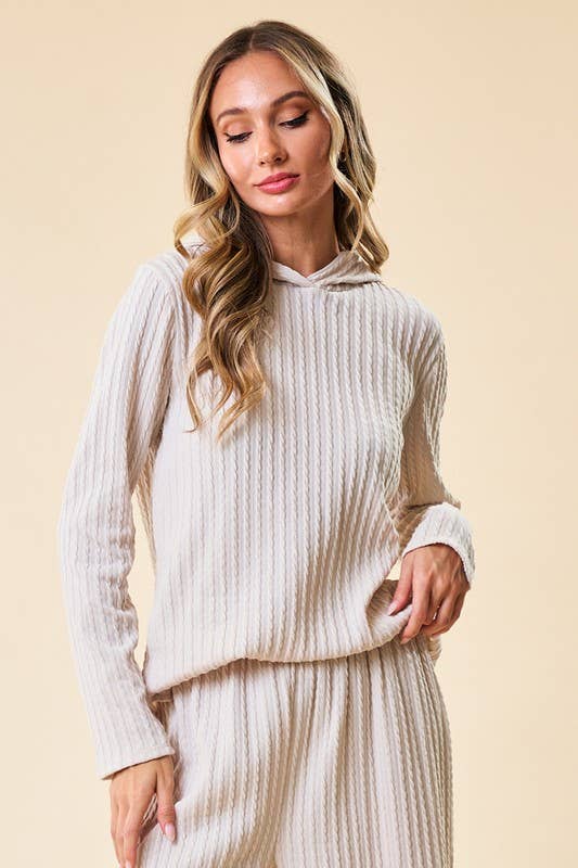 Introducing the New Day Top: a ribbed long-sleeve with the added bonus of a hoodie! This versatile top is perfect for any casual day, keeping you comfortable and stylish. Upgrade your wardrobe with this must-have piece.
