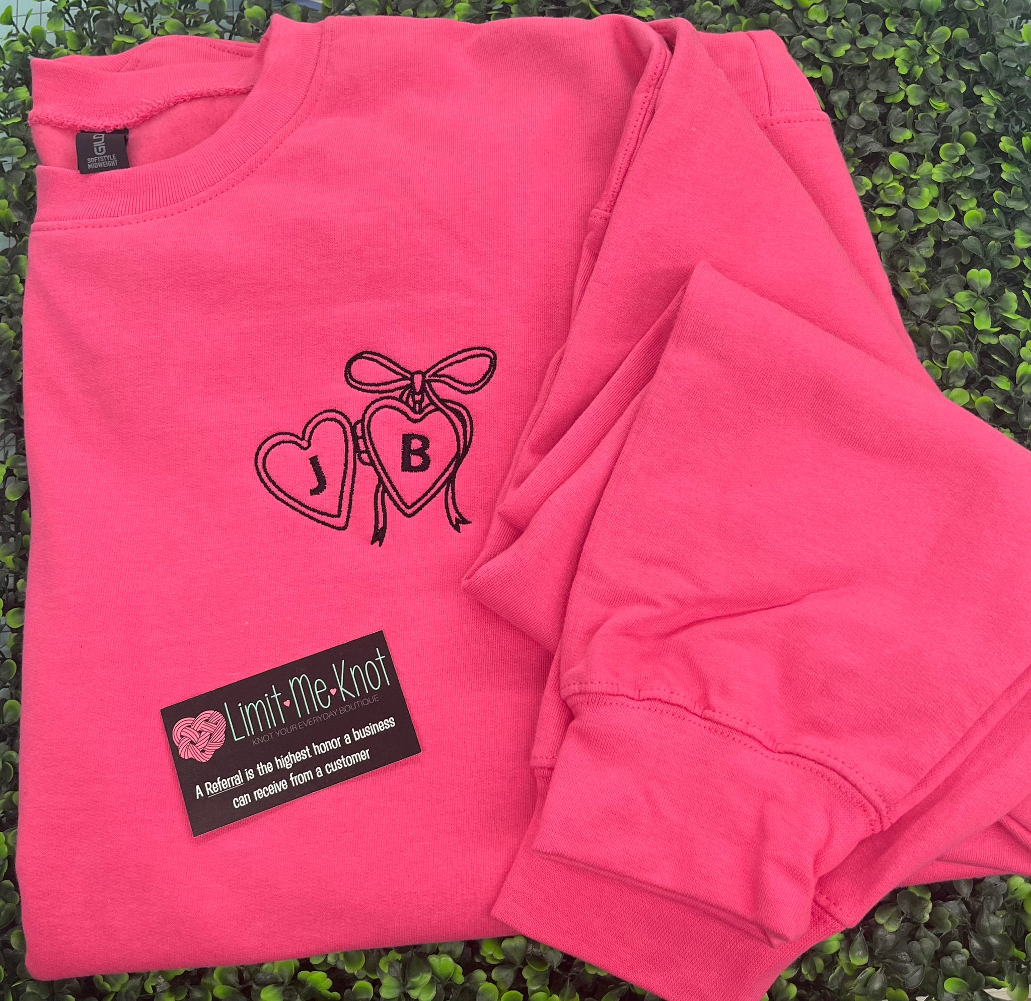Make a heartfelt statement with this personalized crewneck sweatshirt, featuring a delicate embroidered locket that holds your initials close. Simply select your preferred sweatshirt color and thread shade, provide your initials, and let us handle the rest with expert craftsmanship. It's an intimate keepsake that turns everyday wear into a meaningful reminder of your bond. Torn between colors? Go with her favorite—it's a gift she'll treasure and reach for again and again.