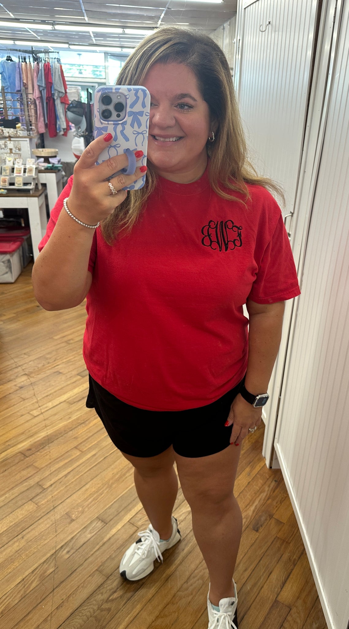 You are not going to want to take this super soft monogrammed tee off! Large range of colors to choose from which are sure to brighten up any outfit. So easy to throw on and look great, take your jeans and t-shirt outfit up a notch! Look put together running errands, going to sporting events, or just lounging. Packs great, making it a vacation favorite.