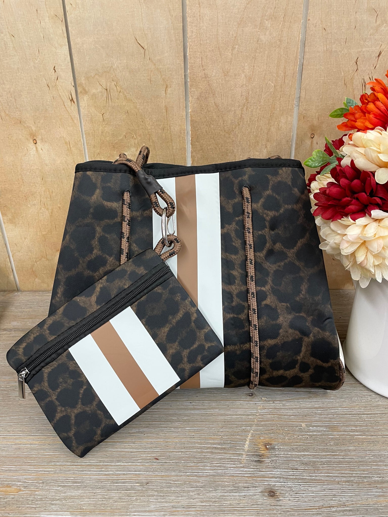 How stinking cute are these new neoprene bags!? They come in all different patterns and are the perfect size where it's not too big and not too small! Also these bags have a strap to tote them around on your shoulder or your arm comfortably.