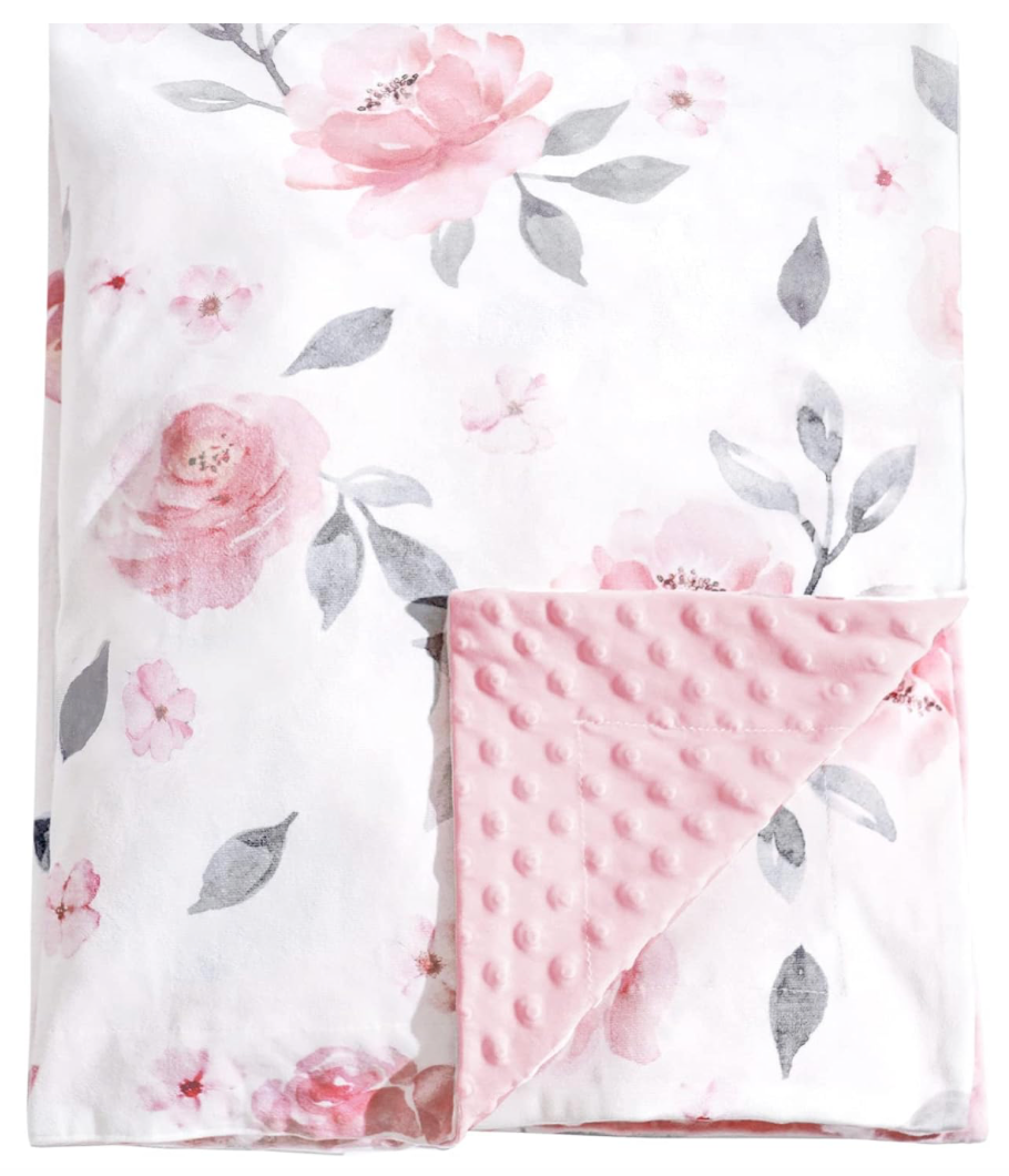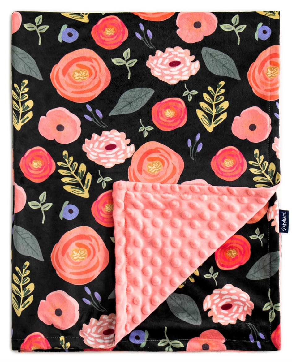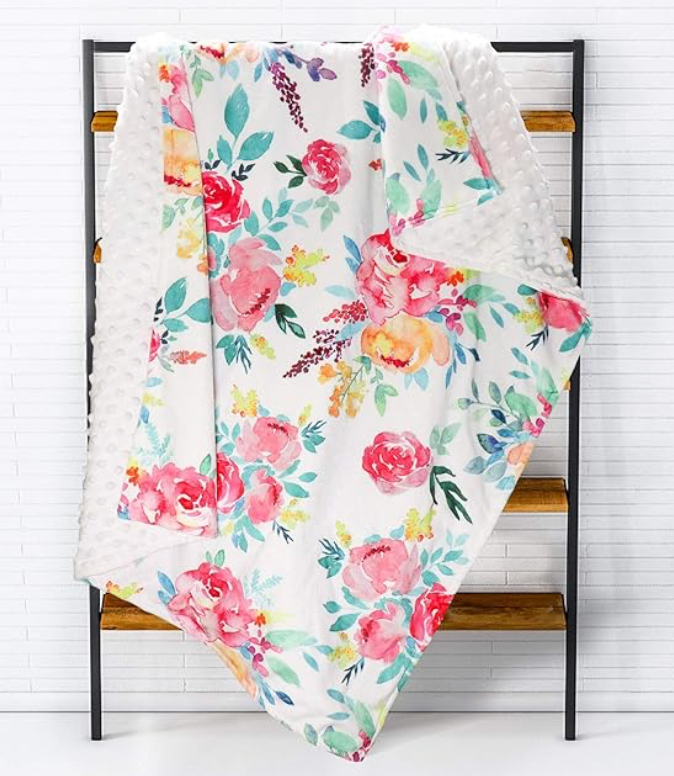 Ultra Soft: It's made of 100% polyester fabric that is durable, breathable and skin-friendly. The double layer design with a dotted backing adds extra softness and comfort, while the beautiful flower pattern stimulates your baby’s imagination and curiosity. Whether it's nap time, play time or cuddle time, this blanket will keep your baby warm and cozy in any season or climate.