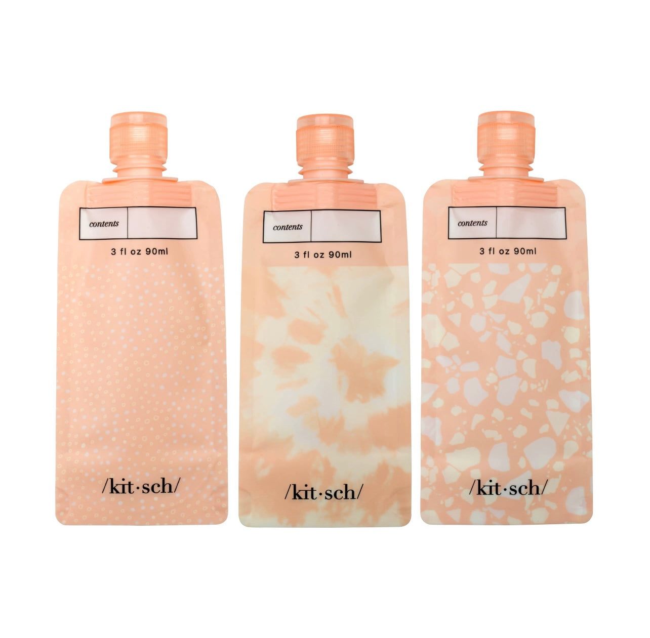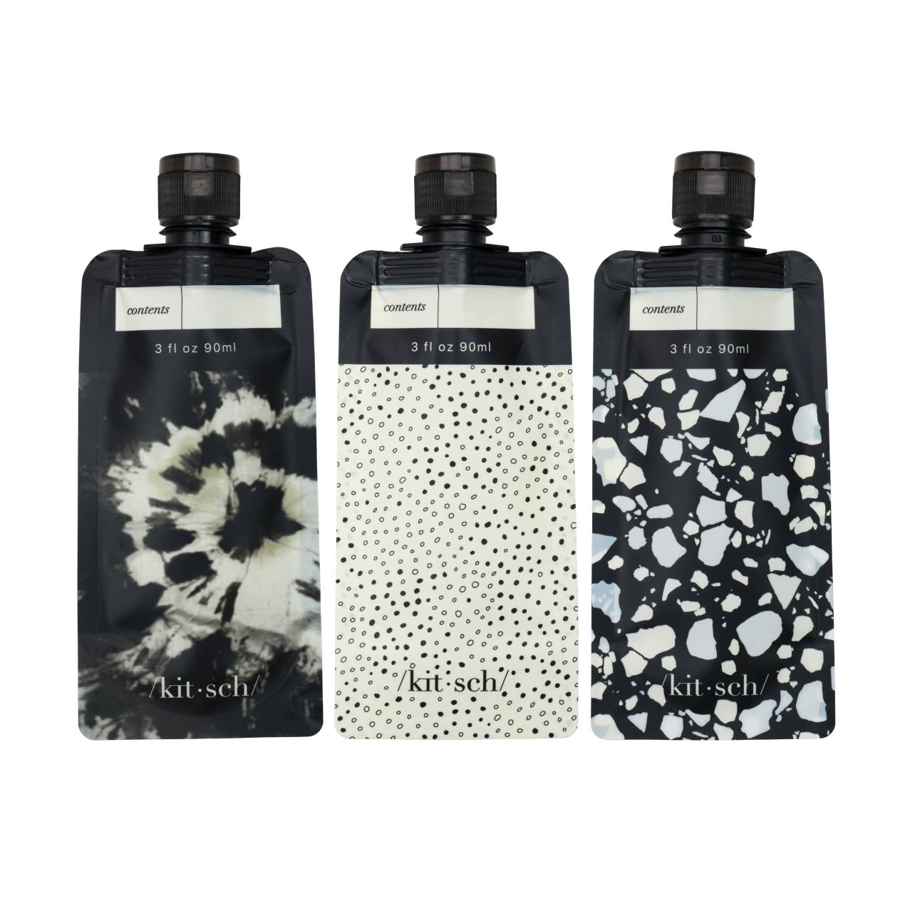 3- 90 ml (3 oz flat pouch bottles)