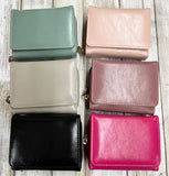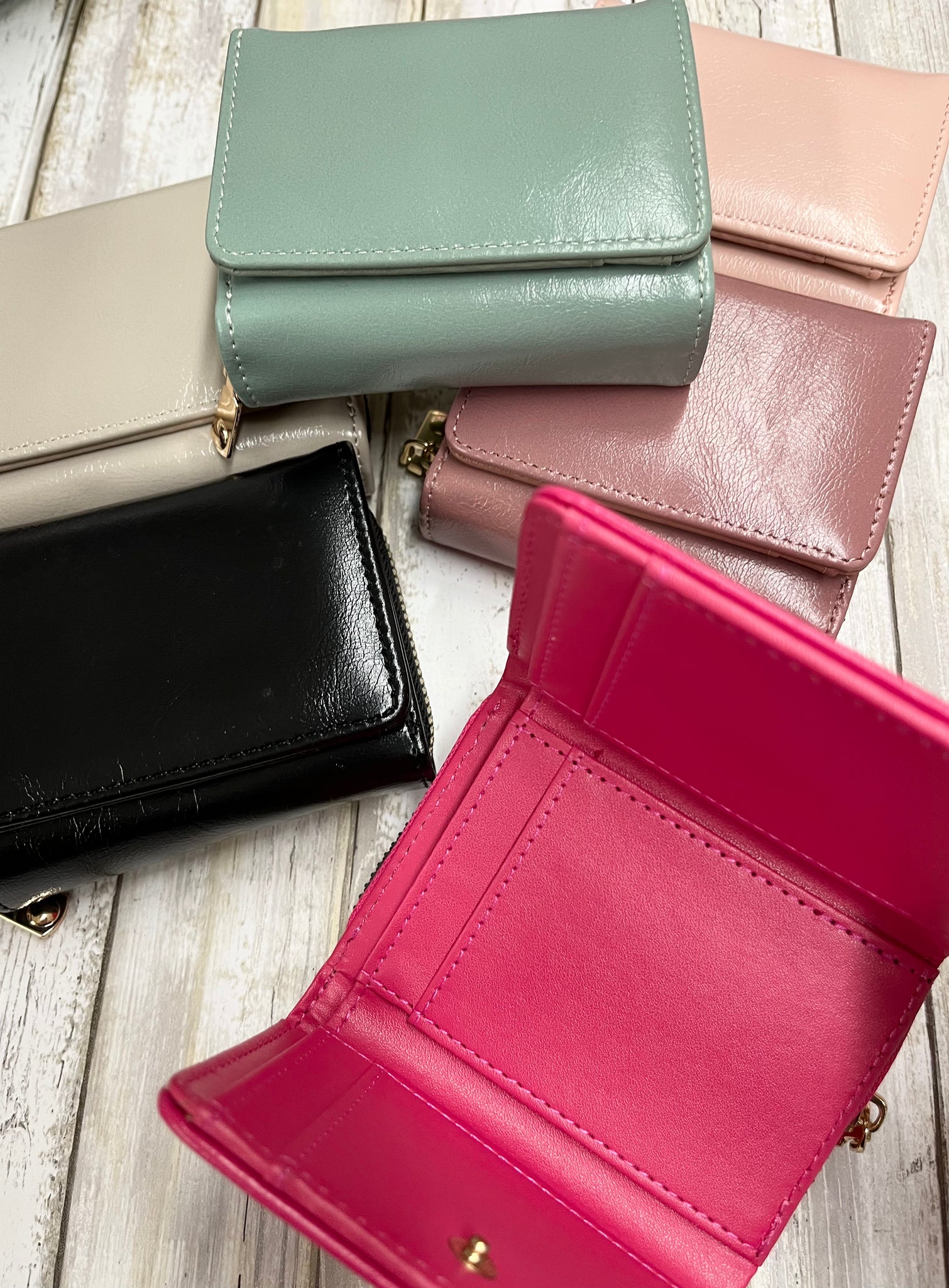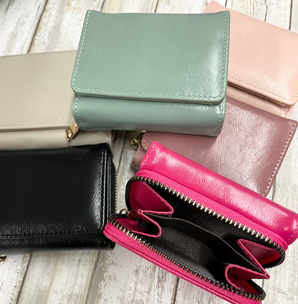 This Small Tri-Fold Wallet is the perfect accessory for carrying your everyday essentials. It comes in six different colors, has a tri-fold design, a gold zipper change pocket, and area for cards. Its compact size makes it ideal for slipping into any pocket or bag.
