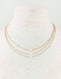 Triple Layered Gold Chain with Small Pearl Beaded 16"-18" Necklace
